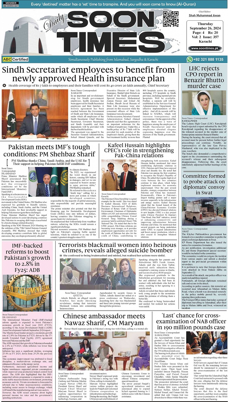 Daily Soon Times September 26, 2024 Daily soon times today's ePaper leading English national newspaper from Islamabad, Sargodha, Karachi, Pakistan << First << 1 >> Last >> Page 1Page 2Page 3Page 4 × Daily Soon Times 1k2k3k4k 1k2k3k4k 1k