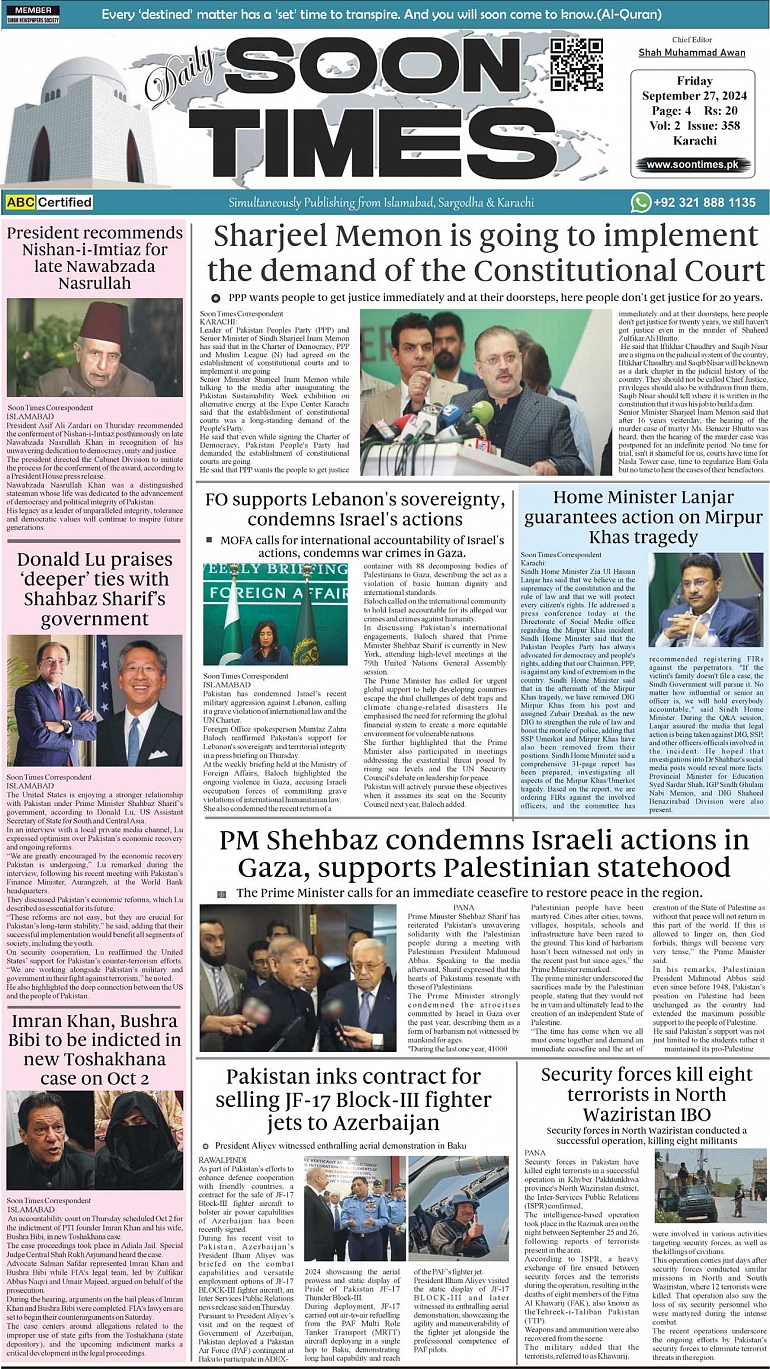 Daily Soon Times September 27, 2024 Daily soon times today's ePaper leading English national newspaper from Islamabad, Sargodha, Karachi, Pakistan << First << 1 >> Last >> Page 1Page 2Page 3Page 4 × Daily Soon Times 1k23k4 1k23k4 1k