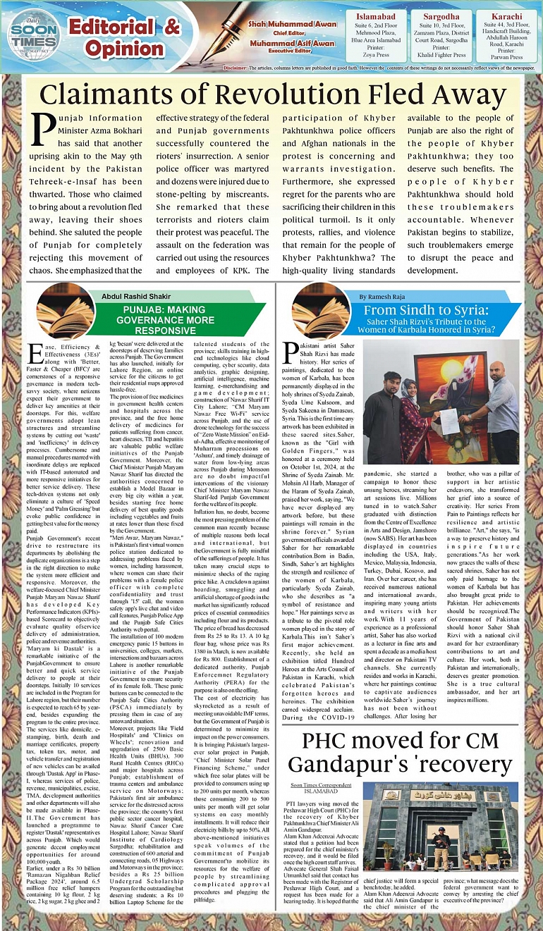 Daily Soon Times Page: 2 October 07, 2024 Daily Soon Times today's ePaper leading English national newspaper from Islamabad, Sargodha, Karachi, Pakistan << First << 2 >> Last >> Page 1Page 2Page 3Page 4 × Daily Soon Times 1234 1234 2
