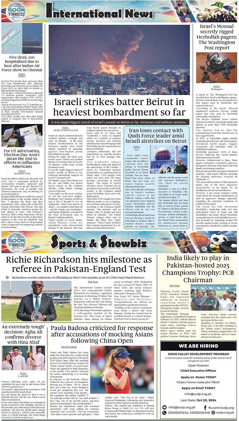 Daily Soon Times Page: 4 October 08, 2024 Daily Soon Times today's ePaper leading English national newspaper from Islamabad, Sargodha, Karachi, Pakistan << First << 4 >> Last >> Page 1Page 2Page 3Page 4 × Daily Soon Times 1k2k3k4k 1k2k3k4k 4k