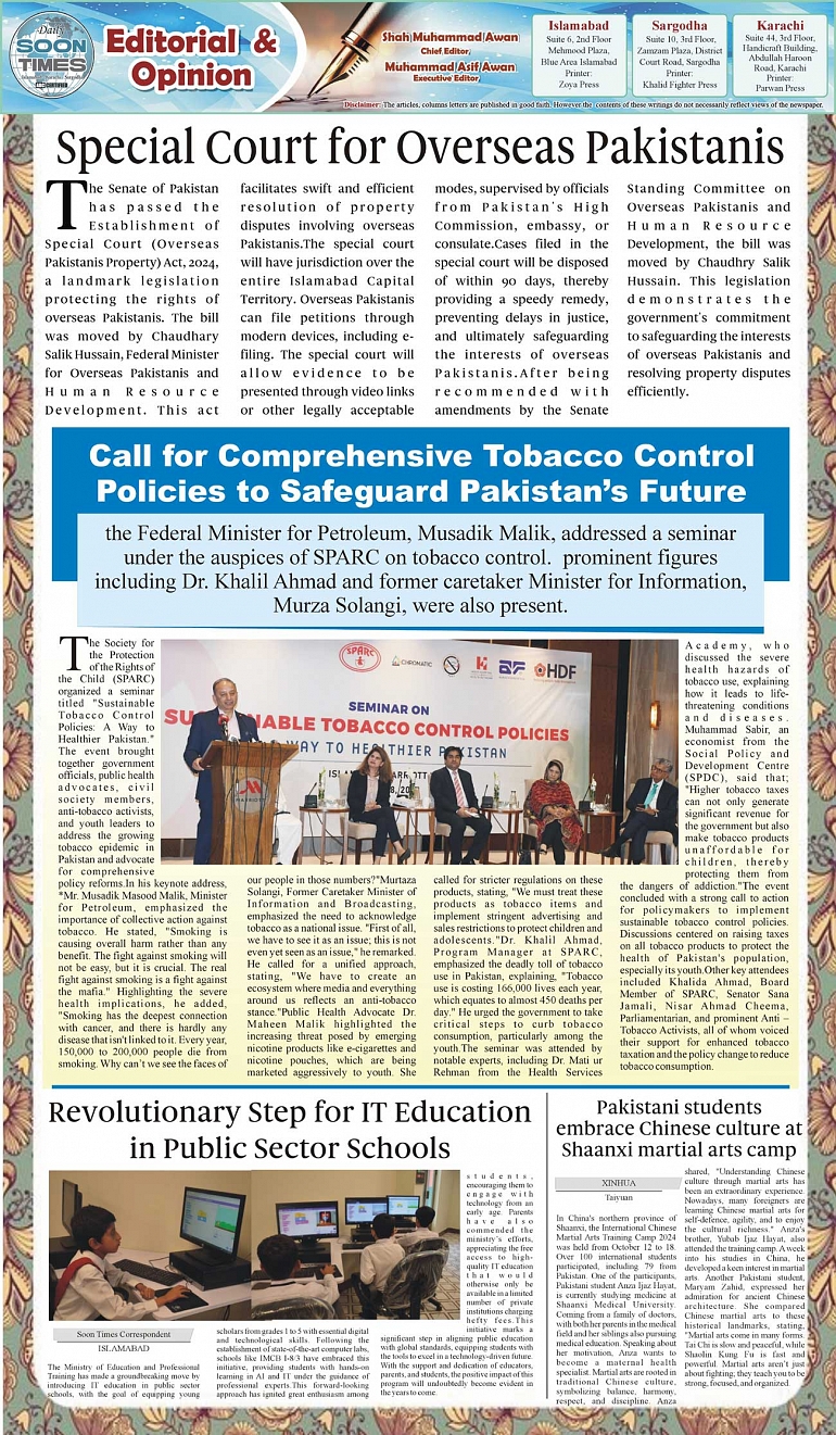 Daily Soon Times Page: 2 October 19, 2024 Daily Soon Times today's ePaper leading English national newspaper from Islamabad, Sargodha, Karachi, Pakistan << First << 2 >> Last >> Page 1Page 2Page 3Page 4 × Daily Soon Times 1K23K4k 1K23K4k 2