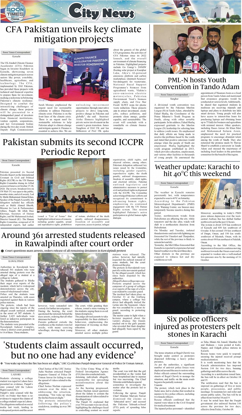 Daily Soon Times Page: 3 October 19, 2024 Daily Soon Times today's ePaper leading English national newspaper from Islamabad, Sargodha, Karachi, Pakistan << First << 3 >> Last >> Page 1Page 2Page 3Page 4 × Daily Soon Times 1K23K4k 1K23K4k 3K