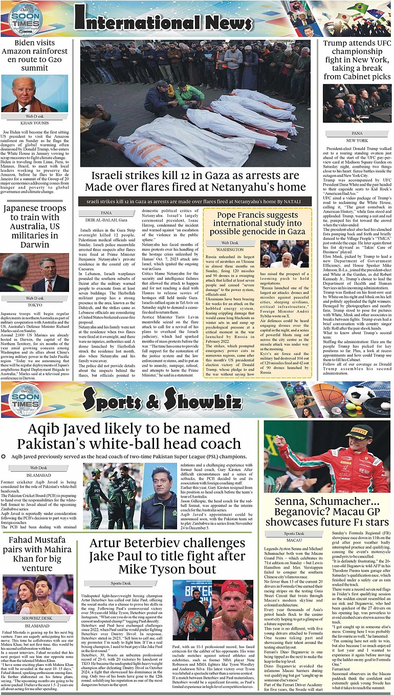 Daily Soon Times Page: 4 November 18, 2024 Daily Soon Times today's ePaper leading English national newspaper from Islamabad, Sargodha, Karachi, Pakistan << First << 4 >> Last >> Page 1Page 2Page 3Page 4 × Daily Soon Times 1234 1234 4