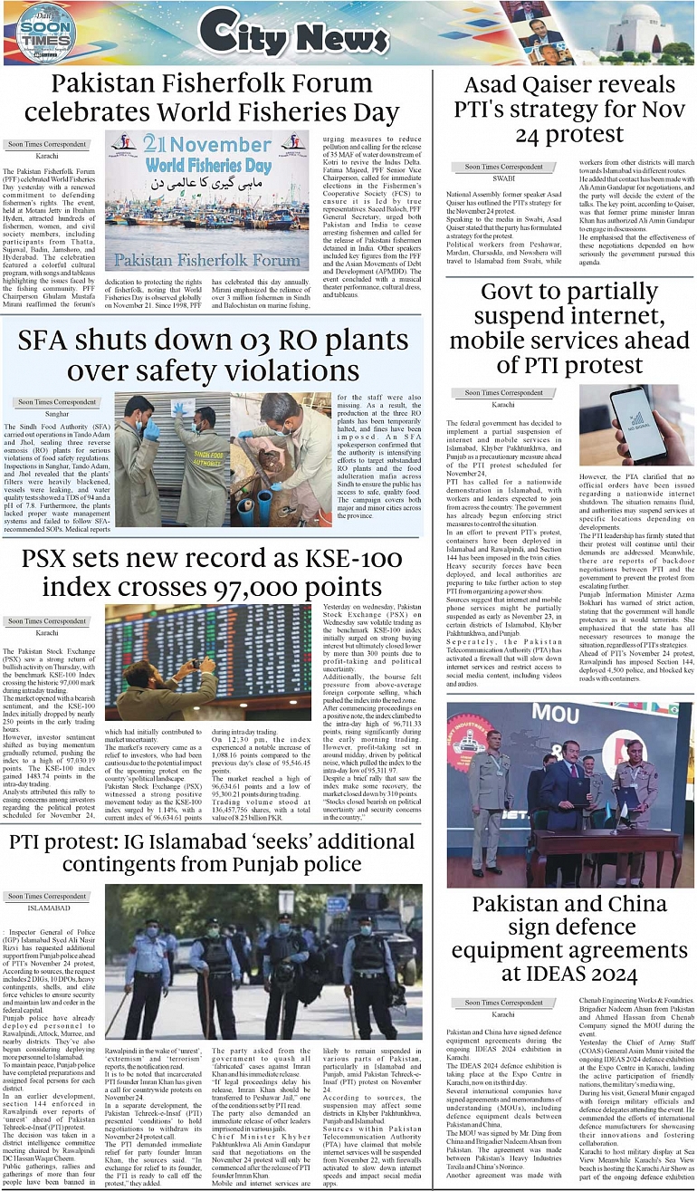 Daily Soon Times Page: 3 November 22, 2024 Daily Soon Times today's ePaper leading English national newspaper from Islamabad, Sargodha, Karachi, Pakistan << First << 3 >> Last >> Page 1Page 2Page 3Page 4 × Daily Soon Times 1k23k4 1k23k4 3k