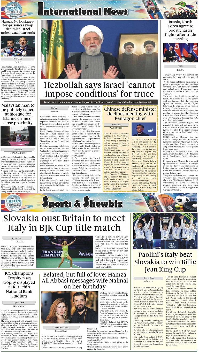 Daily Soon Times Page: 4 November 22, 2024 Daily Soon Times today's ePaper leading English national newspaper from Islamabad, Sargodha, Karachi, Pakistan << First << 4 >> Last >> Page 1Page 2Page 3Page 4 × Daily Soon Times 1k23k4 1k23k4 4