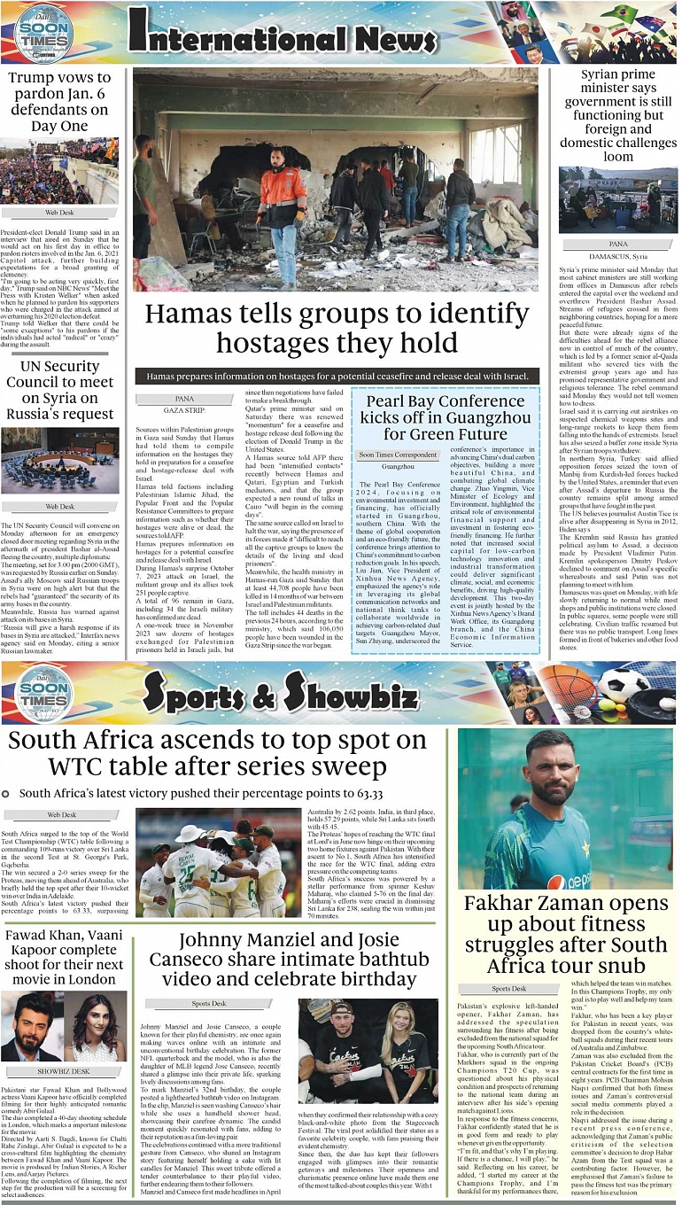 Daily Soon Times Page: 4 December 10, 2024 Daily Soon Times today's ePaper leading English national newspaper from Islamabad, Sargodha, Karachi, Pakistan << First << 4 >> Last >> Page 1Page 2Page 3Page 4 × Daily Soon Times 1234 1234 4