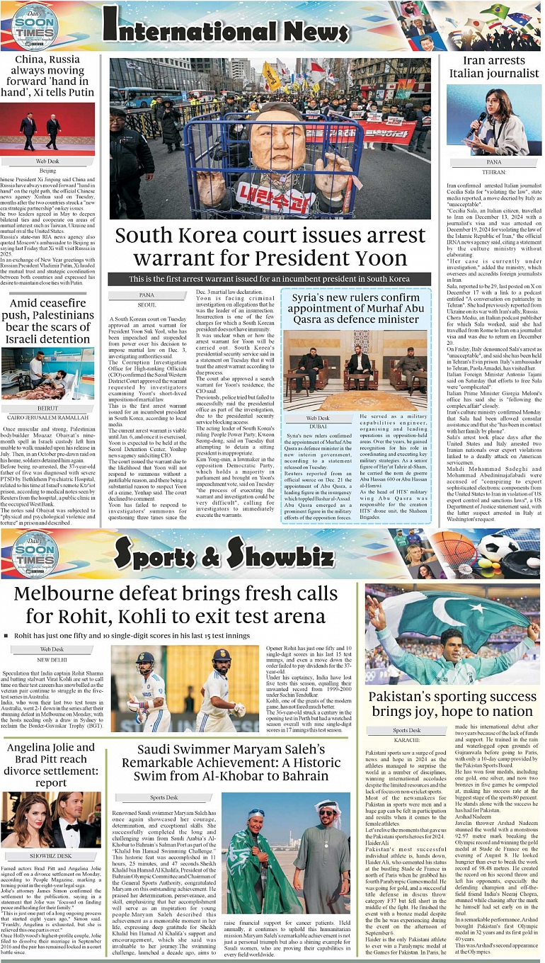 Daily Soon Times Page: 4 January 01, 2025 Daily Soon Times today's ePaper leading English national newspaper from Islamabad, Sargodha, Karachi, Pakistan << First << 4 >> Last >> Page 1Page 2Page 3Page 4 × Daily Soon Times 1K2,3K4, 1K2,3K4, 4,
