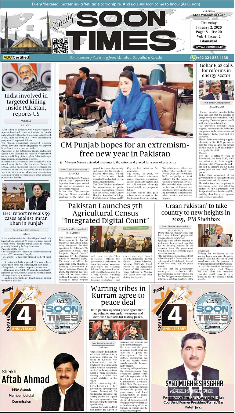 Daily Soon Times January 02, 2025 Daily Soon Times today's ePaper leading English national newspaper from Islamabad, Sargodha, Karachi, Pakistan << First << 1 >> Last >> Page 1Page 2Page 3Page 4 × Daily Soon Times 1234 1234 1