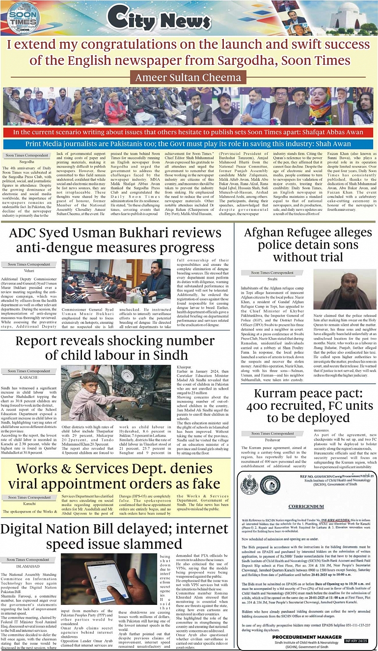 Daily Soon Times Page: 3 January 03, 2025 Daily Soon Times today's ePaper leading English national newspaper from Islamabad, Sargodha, Karachi, Pakistan << First << 3 >> Last >> Page 1Page 2Page 3Page 4 × Daily Soon Times 1k23k4 1k23k4 3k