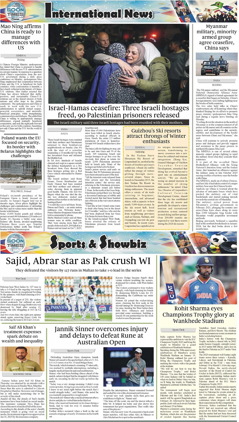 Daily Soon Times Page: 4 January 21, 2025 Daily Soon Times today's ePaper leading English national newspaper from Islamabad, Sargodha, Karachi, Pakistan << First << 4 >> Last >> Page 1Page 2Page 3Page 4 × Daily Soon Times 1k23k4 1k23k4 4