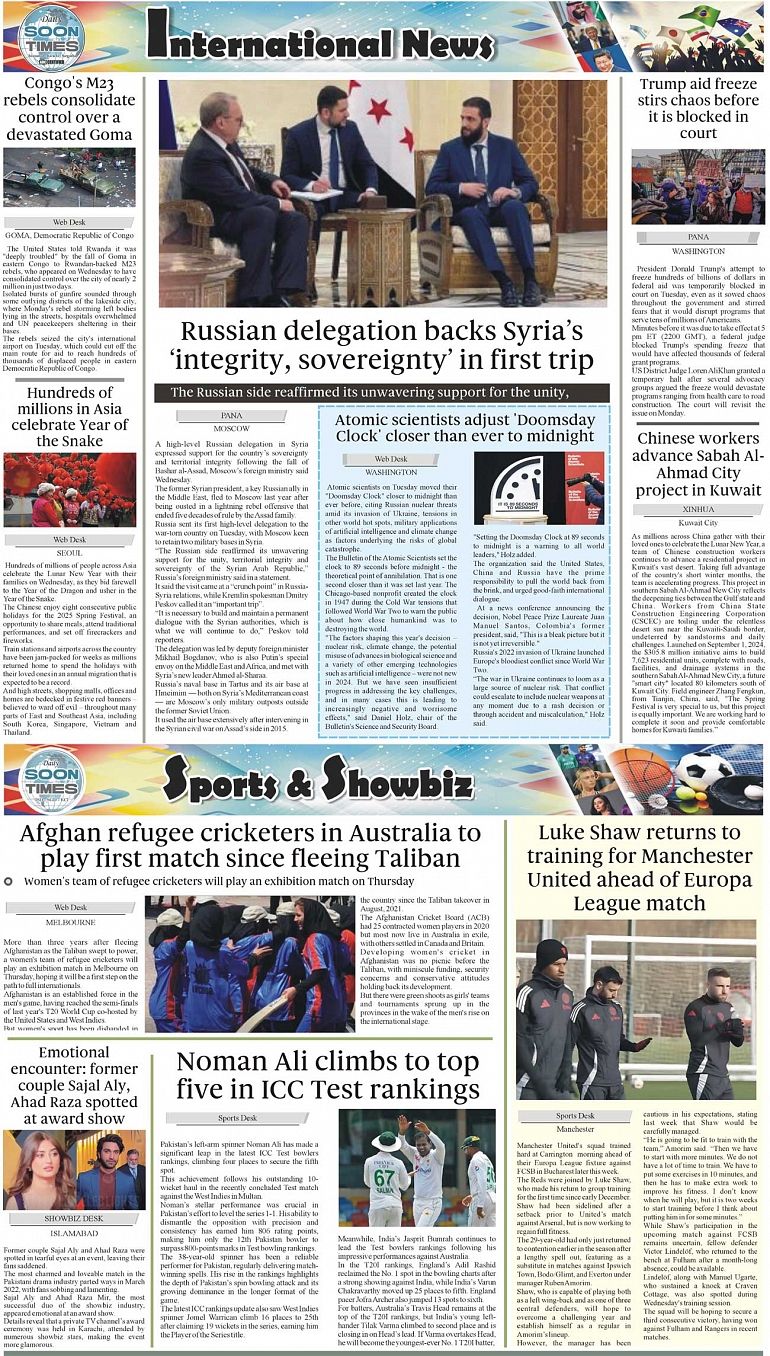 Daily Soon Times Page: 4 January 30, 2025 Daily Soon Times today's ePaper leading English national newspaper from Islamabad, Sargodha, Karachi, Pakistan << First << 4 >> Last >> Page 1Page 2Page 3Page 4 × Daily Soon Times 1k23k4 1k23k4 4