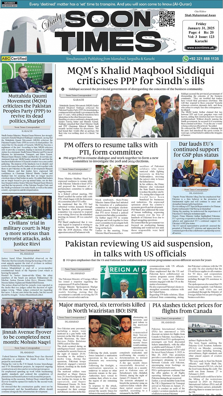 Daily Soon Times January 31, 2025 Daily Soon Times today's ePaper leading English national newspaper from Islamabad, Sargodha, Karachi, Pakistan << First << 1 >> Last >> Page 1Page 2Page 3Page 4 × Daily Soon Times 1k2k3k4 1k2k3k4 1k