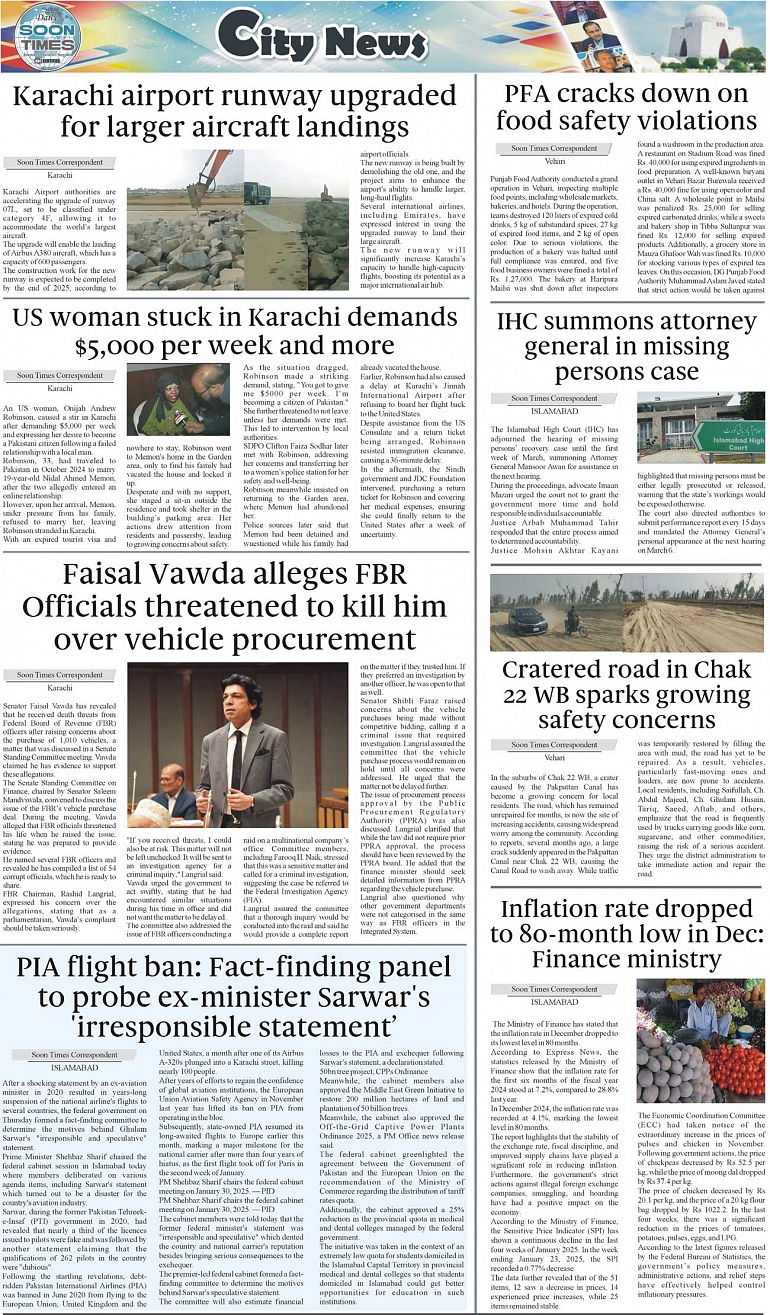 Daily Soon Times Page: 3 January 31, 2025 Daily Soon Times today's ePaper leading English national newspaper from Islamabad, Sargodha, Karachi, Pakistan << First << 3 >> Last >> Page 1Page 2Page 3Page 4 × Daily Soon Times 1k2k3k4 1k2k3k4 3k