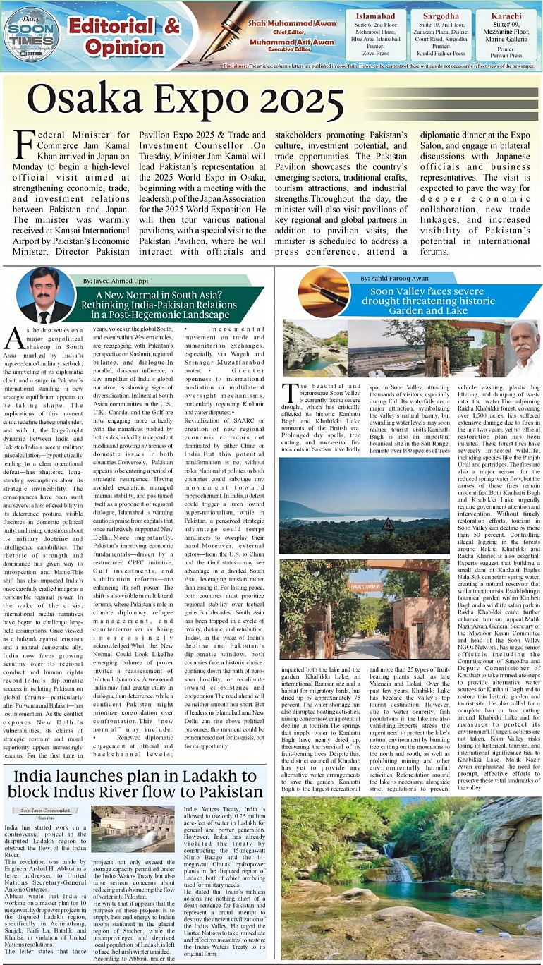 Daily Soon Times Page: 2 May 27, 2025 Daily Soon Times today's ePaper leading English national newspaper from Islamabad, Sargodha, Karachi, Pakistan << First << 2 >> Last >> Page 1Page 2Page 3Page 4 × Daily Soon Times 1k23k4 1k23k4 2