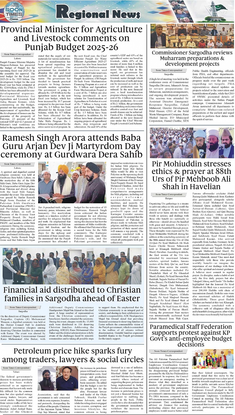 Daily Soon Times Page: 3 June 17, 2025 Daily Soon Times today's ePaper leading English national newspaper from Islamabad, Sargodha, Karachi, Pakistan << First << 3 >> Last >> Page 1Page 2Page 3Page 4 × Daily Soon Times 1.234 1.234 3