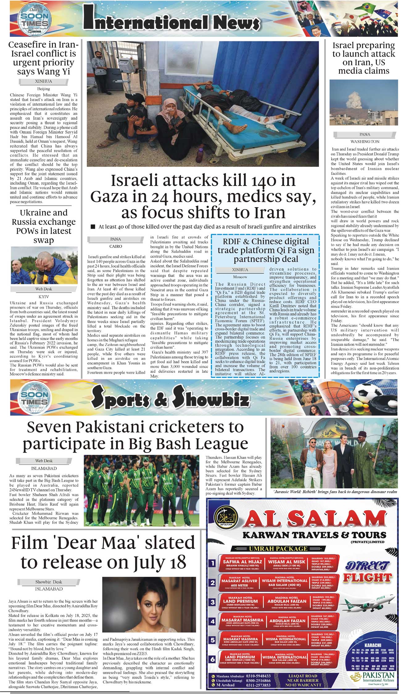 Daily Soon Times Page: 4 June 20, 2025 Daily Soon Times today's ePaper leading English national newspaper from Islamabad, Sargodha, Karachi, Pakistan << First << 4 >> Last >> Page 1Page 2Page 3Page 4 × Daily Soon Times 1k23k4k 1k23k4k 4k