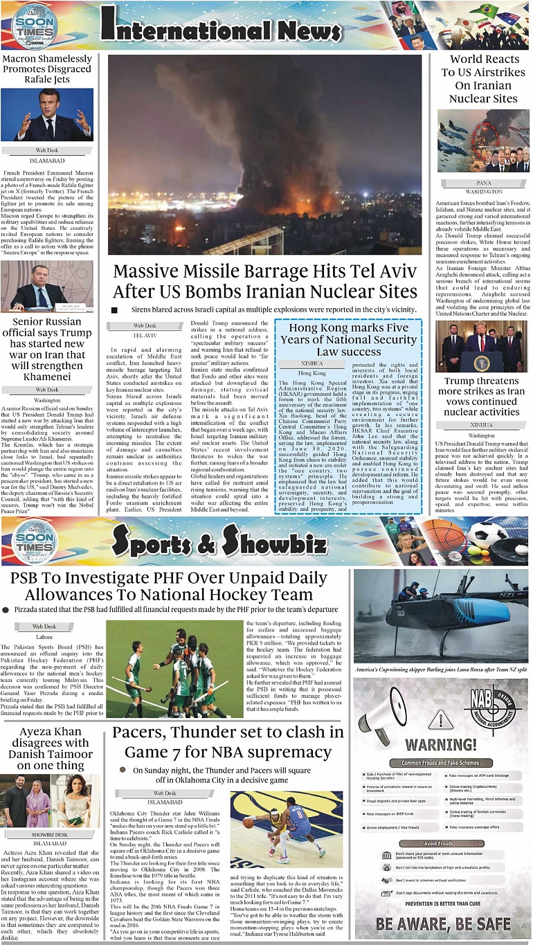 Daily Soon Times Page: 4 June 23, 2025 Daily Soon Times today's ePaper leading English national newspaper from Islamabad, Sargodha, Karachi, Pakistan << First << 4 >> Last >> Page 1Page 2Page 3Page 4 × Daily Soon Times 1.2k34 1.2k34 4