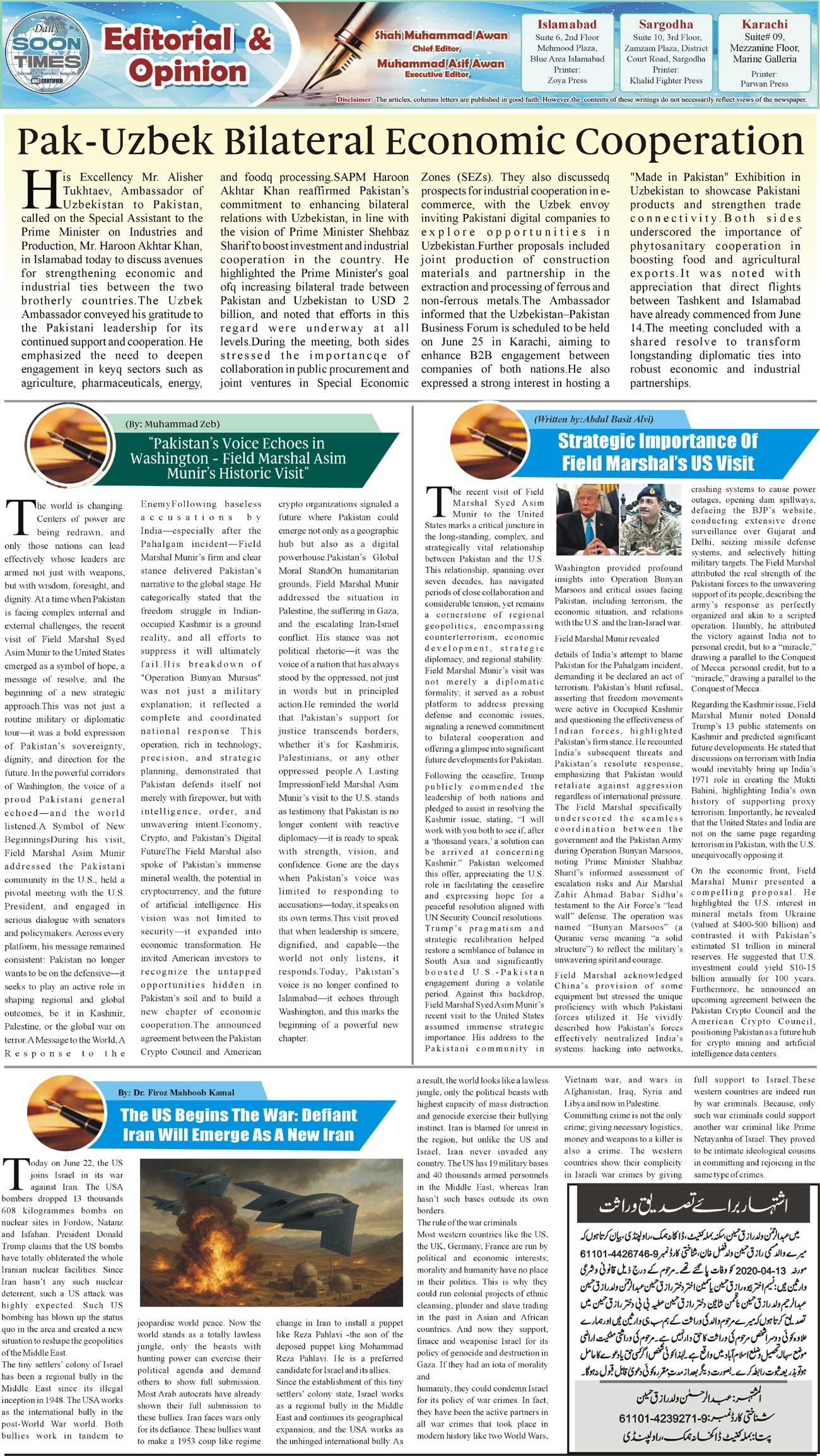 Daily Soon Times Page: 2 June 24, 2025 Daily Soon Times today's ePaper leading English national newspaper from Islamabad, Sargodha, Karachi, Pakistan << First << 2 >> Last >> Page 1Page 2Page 3Page 4 × Daily Soon Times 1234 1234 2