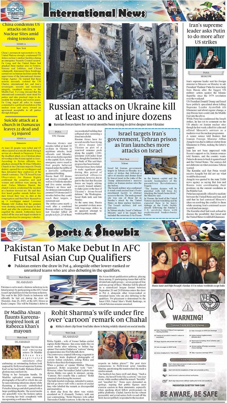 Daily Soon Times Page: 4 June 24, 2025 Daily Soon Times today's ePaper leading English national newspaper from Islamabad, Sargodha, Karachi, Pakistan << First << 4 >> Last >> Page 1Page 2Page 3Page 4 × Daily Soon Times 1234 1234 4
