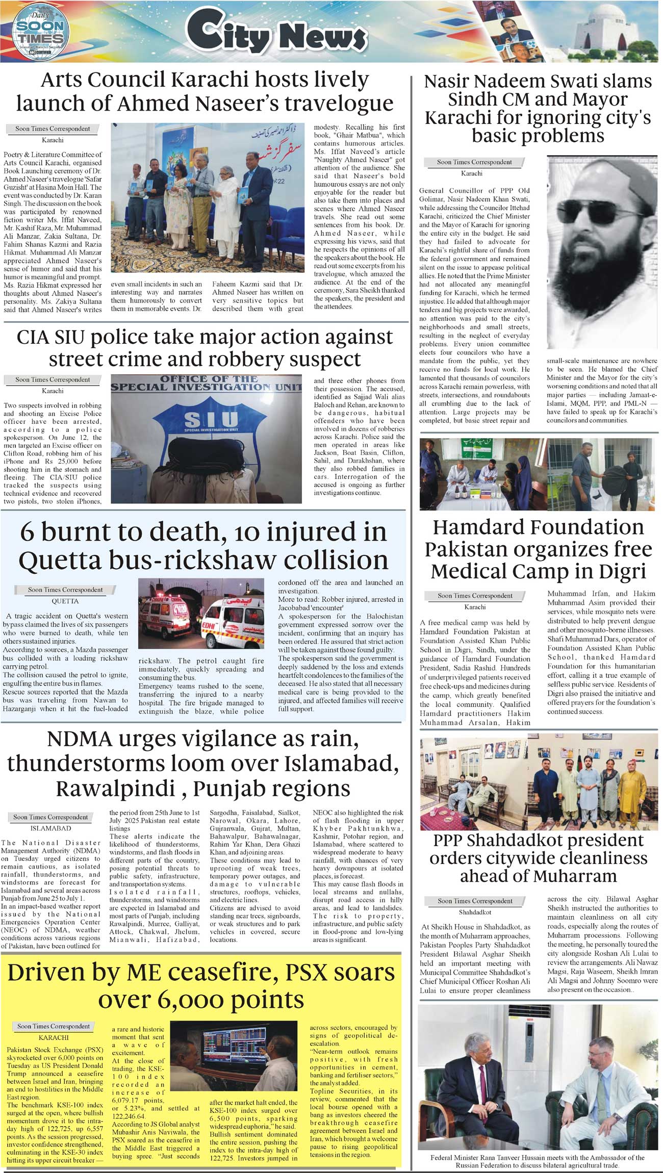 Daily Soon Times Page: 3 June 25, 2025 Daily Soon Times today's ePaper leading English national newspaper from Islamabad, Sargodha, Karachi, Pakistan << First << 3 >> Last >> Page 1Page 2Page 3Page 4 × Daily Soon Times 1k23k4 1k23k4 3k