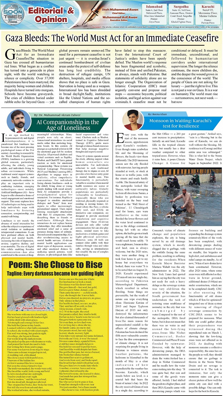 Daily Soon Times Page: 2 June 27, 2025 Daily Soon Times today's ePaper leading English national newspaper from Islamabad, Sargodha, Karachi, Pakistan << First << 2 >> Last >> Page 1Page 2Page 3Page 4 × Daily Soon Times 1234 1234 2