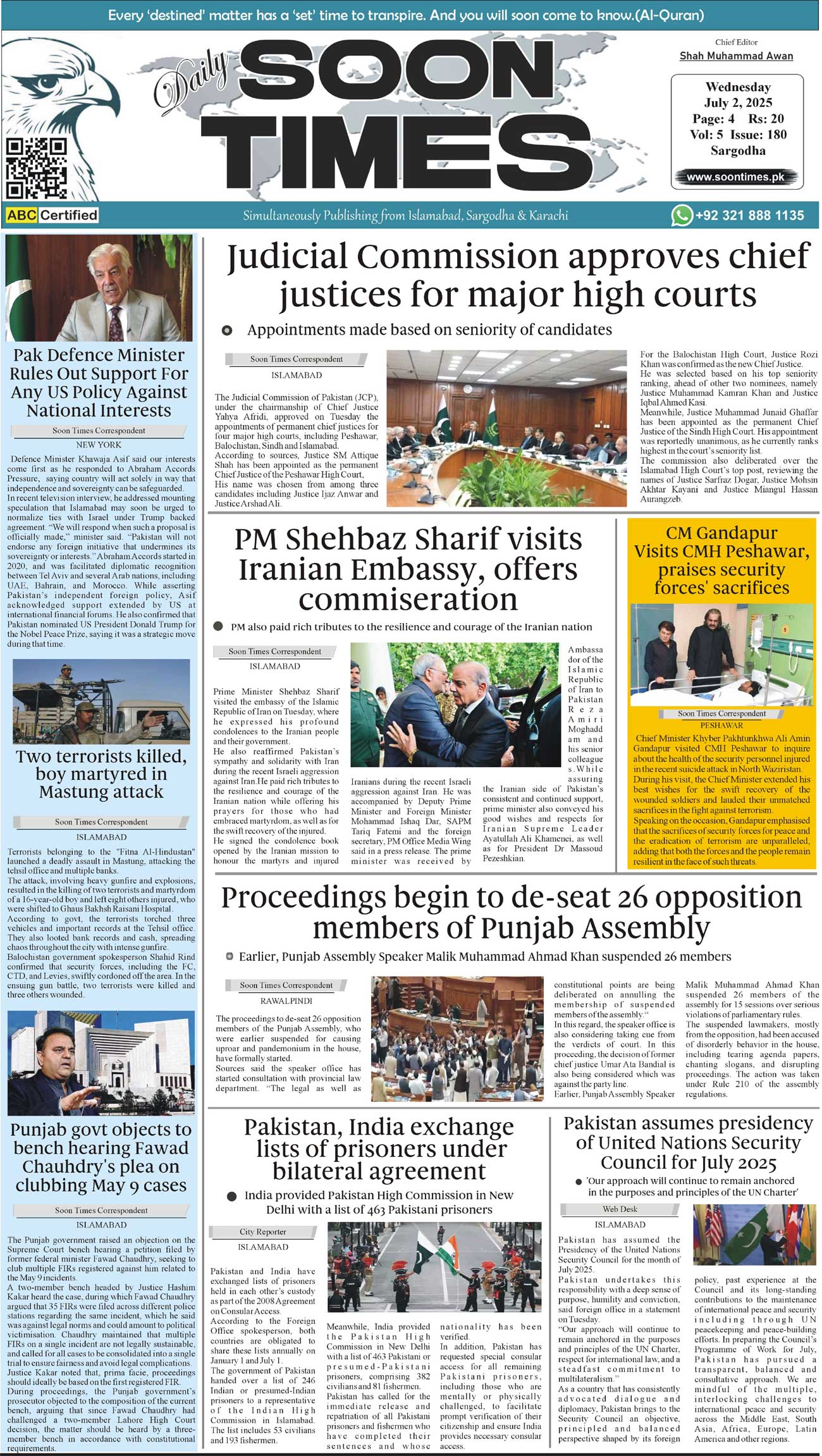 Daily Soon Times July 02, 2025 Daily Soon Times today's ePaper leading English national newspaper from Islamabad, Sargodha, Karachi, Pakistan << First << 1 >> Last >> Page 1Page 2Page 3Page 4 × Daily Soon Times 1234 1234 1