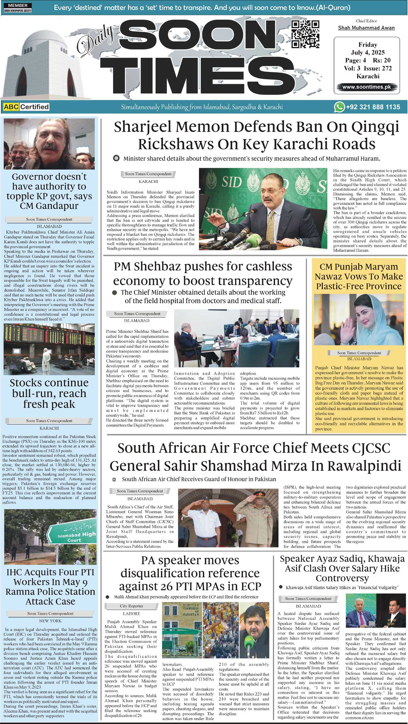 Daily Soon Times July 04, 2025 Daily Soon Times today's ePaper leading English national newspaper from Islamabad, Sargodha, Karachi, Pakistan << First << 1 >> Last >> Page 1Page 2Page 3Page 4 × Daily Soon Times 1k23k4 1k23k4 1k