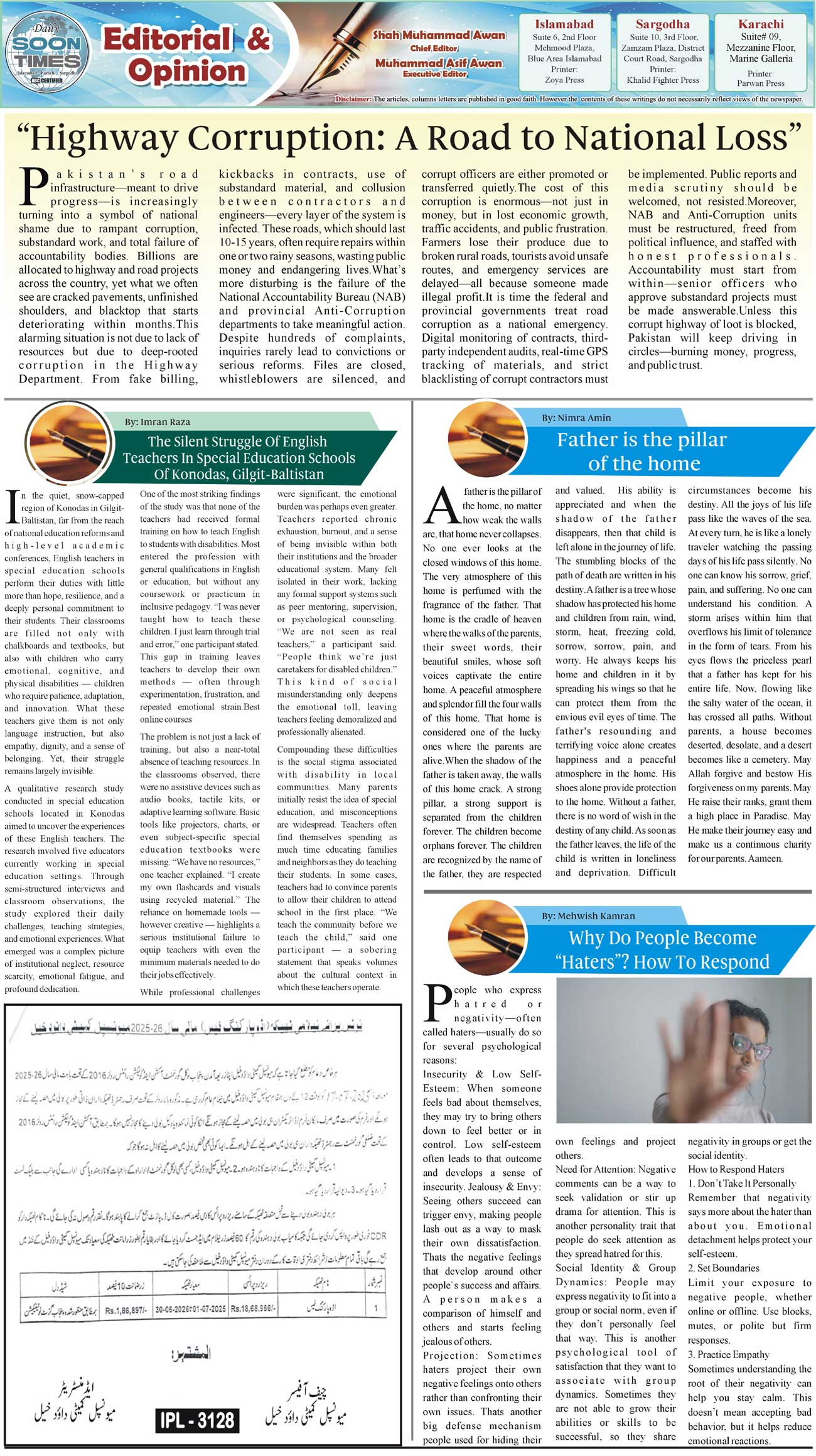 Daily Soon Times Page: 2 July 04, 2025 Daily Soon Times today's ePaper leading English national newspaper from Islamabad, Sargodha, Karachi, Pakistan << First << 2 >> Last >> Page 1Page 2Page 3Page 4 × Daily Soon Times 1k23k4 1k23k4 2