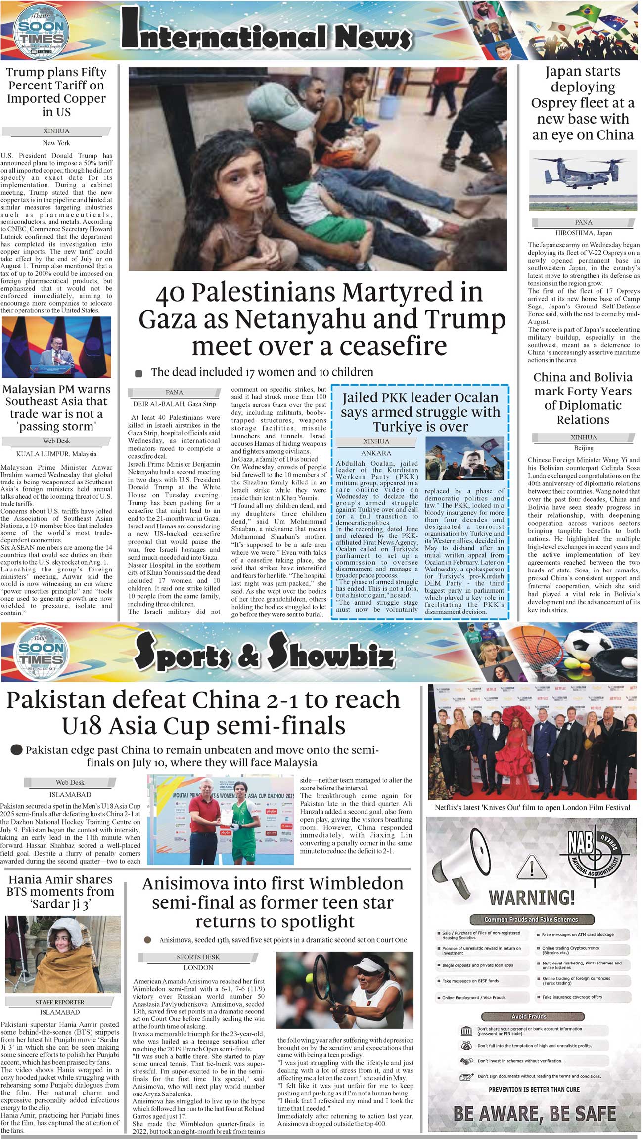 Daily Soon Times Page: 4 July 10, 2025 Daily Soon Times today's ePaper leading English national newspaper from Islamabad, Sargodha, Karachi, Pakistan << First << 4 >> Last >> Page 1Page 2Page 3Page 4 × Daily Soon Times 1.234 1.234 4