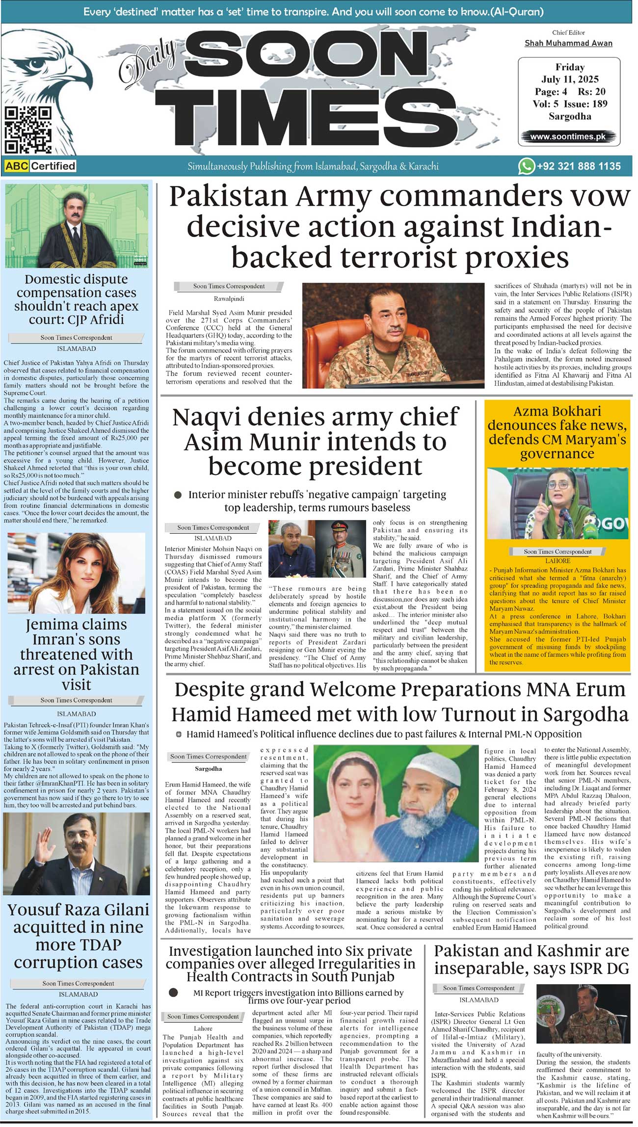 Daily Soon Times July 11, 2025 Daily Soon Times today's ePaper leading English national newspaper from Islamabad, Sargodha, Karachi, Pakistan << First << 1 >> Last >> Page 1Page 2Page 3Page 4 × Daily Soon Times 1234 1234 1