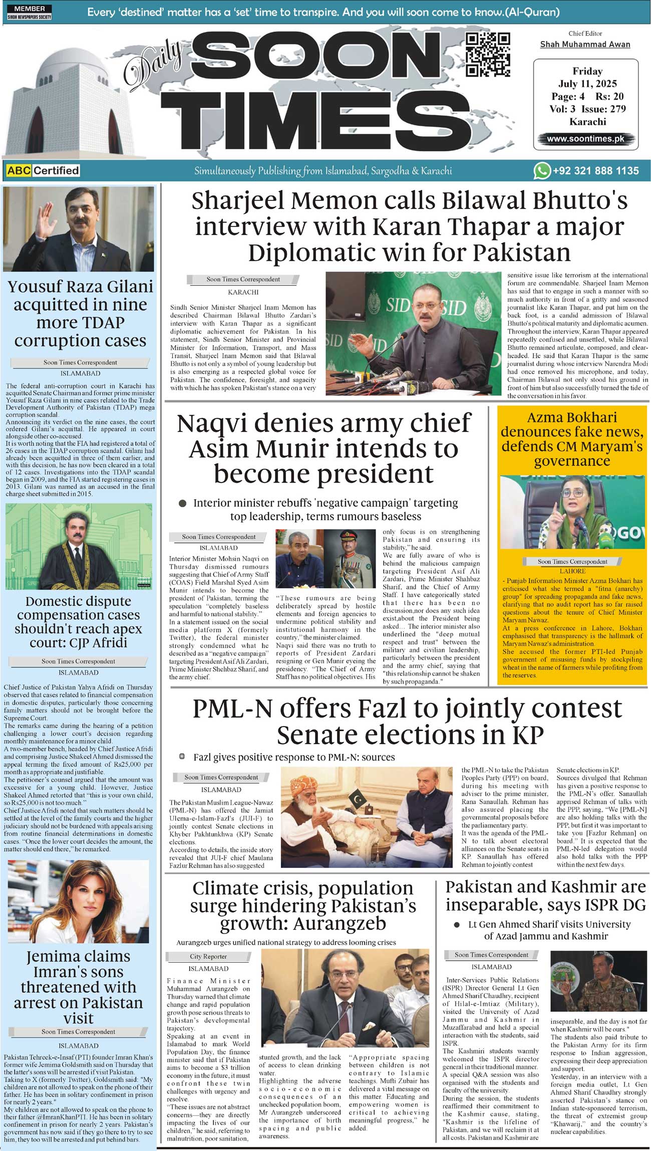 Daily Soon Times July 11, 2025 Daily Soon Times today's ePaper leading English national newspaper from Islamabad, Sargodha, Karachi, Pakistan << First << 1 >> Last >> Page 1Page 2Page 3Page 4 × Daily Soon Times 1k2k3k4 1k2k3k4 1k
