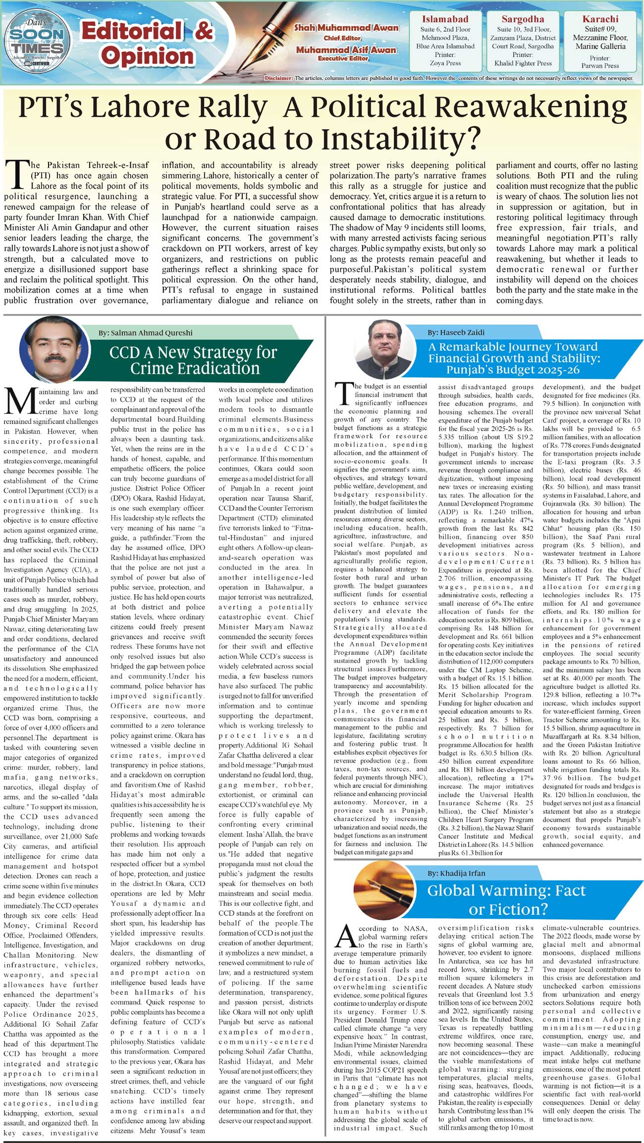 Daily Soon Times Page: 2 July 14, 2025 Daily Soon Times today's ePaper leading English national newspaper from Islamabad, Sargodha, Karachi, Pakistan << First << 2 >> Last >> Page 1Page 2Page 3Page 4 × Daily Soon Times 1234 1234 2
