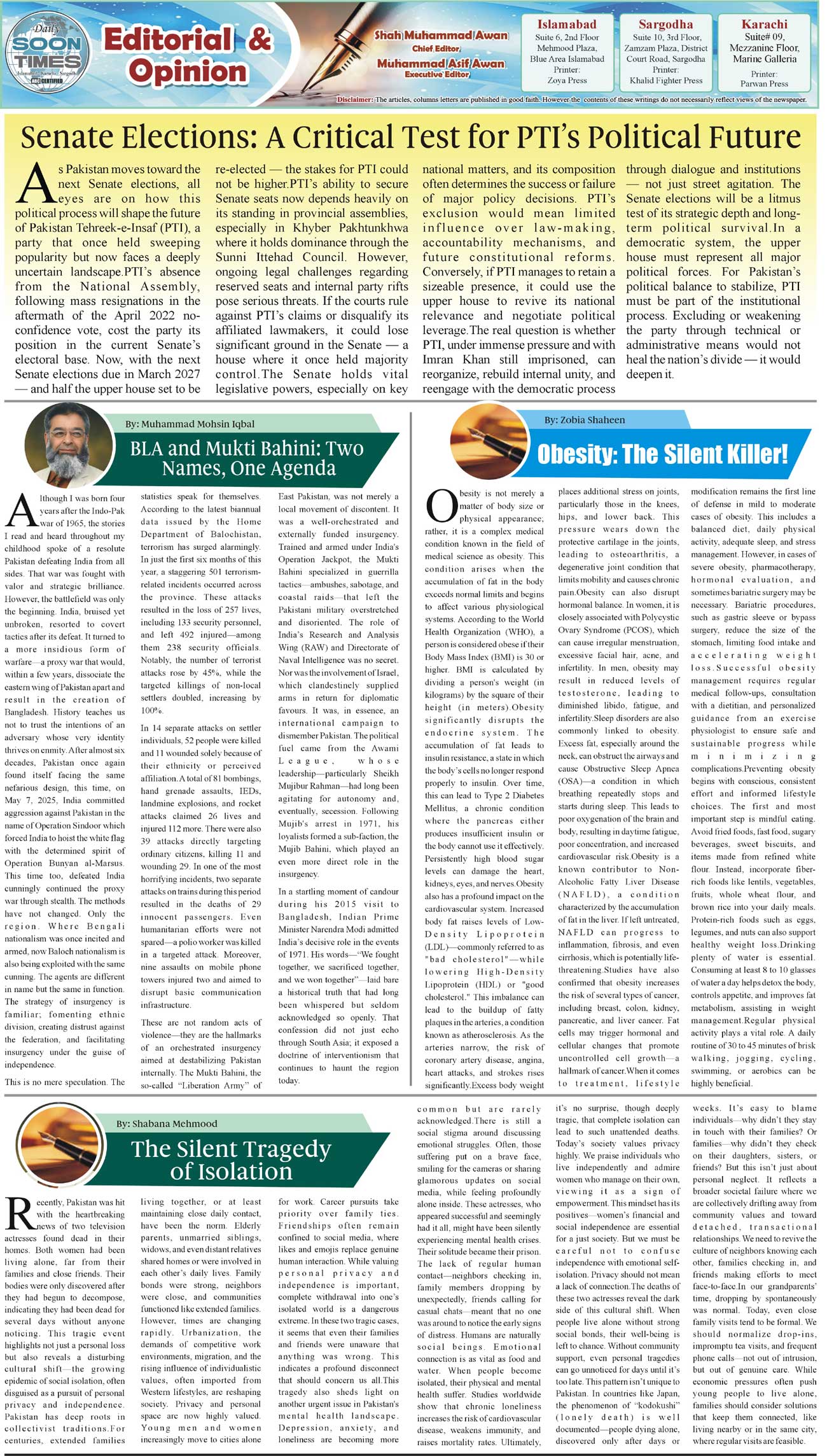 Daily Soon Times Page: 2 July 15, 2025 Daily Soon Times today's ePaper leading English national newspaper from Islamabad, Sargodha, Karachi, Pakistan << First << 2 >> Last >> Page 1Page 2Page 3Page 4 × Daily Soon Times 1234 1234 2