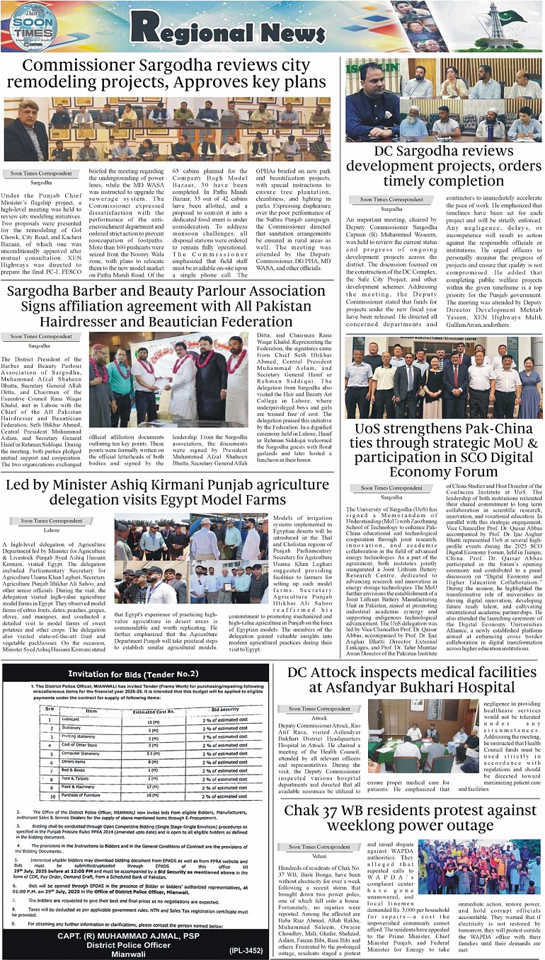 Daily Soon Times Page: 3 July 15, 2025 Daily Soon Times today's ePaper leading English national newspaper from Islamabad, Sargodha, Karachi, Pakistan << First << 3 >> Last >> Page 1Page 2Page 3Page 4 × Daily Soon Times 1234 1234 3