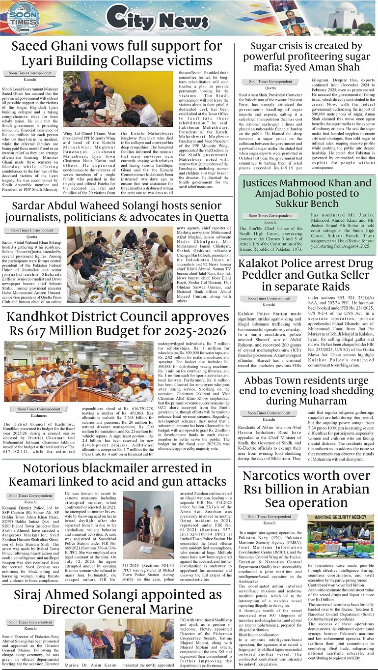 Daily Soon Times Page: 3 July 15, 2025 Daily Soon Times today's ePaper leading English national newspaper from Islamabad, Sargodha, Karachi, Pakistan << First << 3 >> Last >> Page 1Page 2Page 3Page 4 × Daily Soon Times 1k23k4 1k23k4 3k