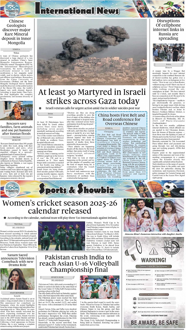 Daily Soon Times Page: 4 July 19, 2025 Daily Soon Times today's ePaper leading English national newspaper from Islamabad, Sargodha, Karachi, Pakistan << First << 4 >> Last >> Page 1Page 2Page 3Page 4 × Daily Soon Times 1.234 1.234 4