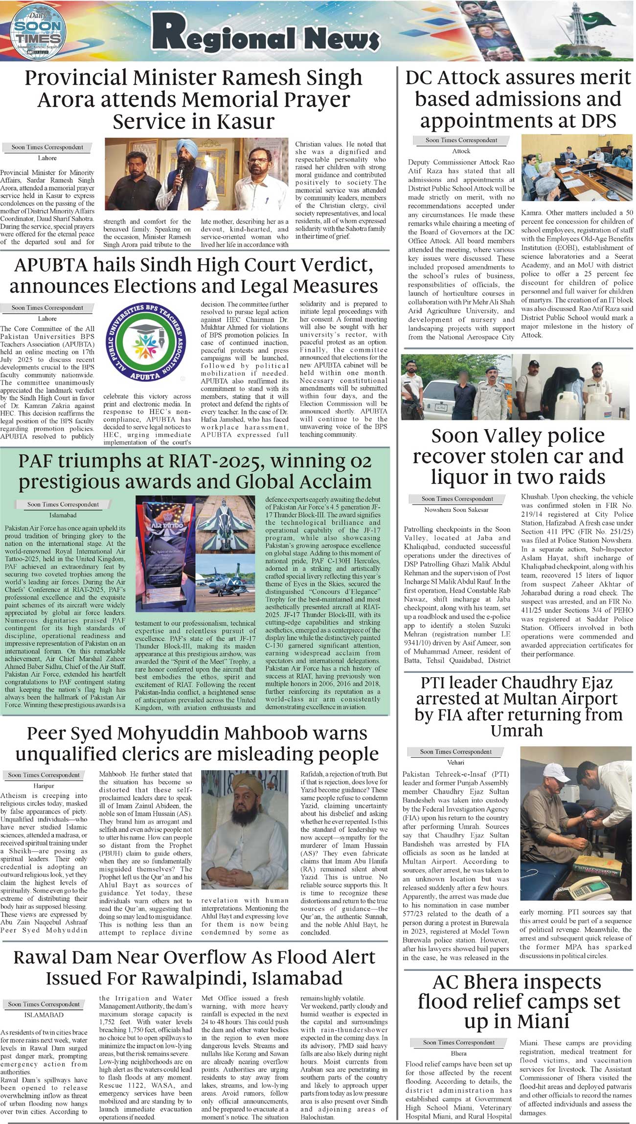 Daily Soon Times Page: 3 July 21, 2025 Daily Soon Times today's ePaper leading English national newspaper from Islamabad, Sargodha, Karachi, Pakistan << First << 3 >> Last >> Page 1Page 2Page 3Page 4 × Daily Soon Times 1234 1234 3