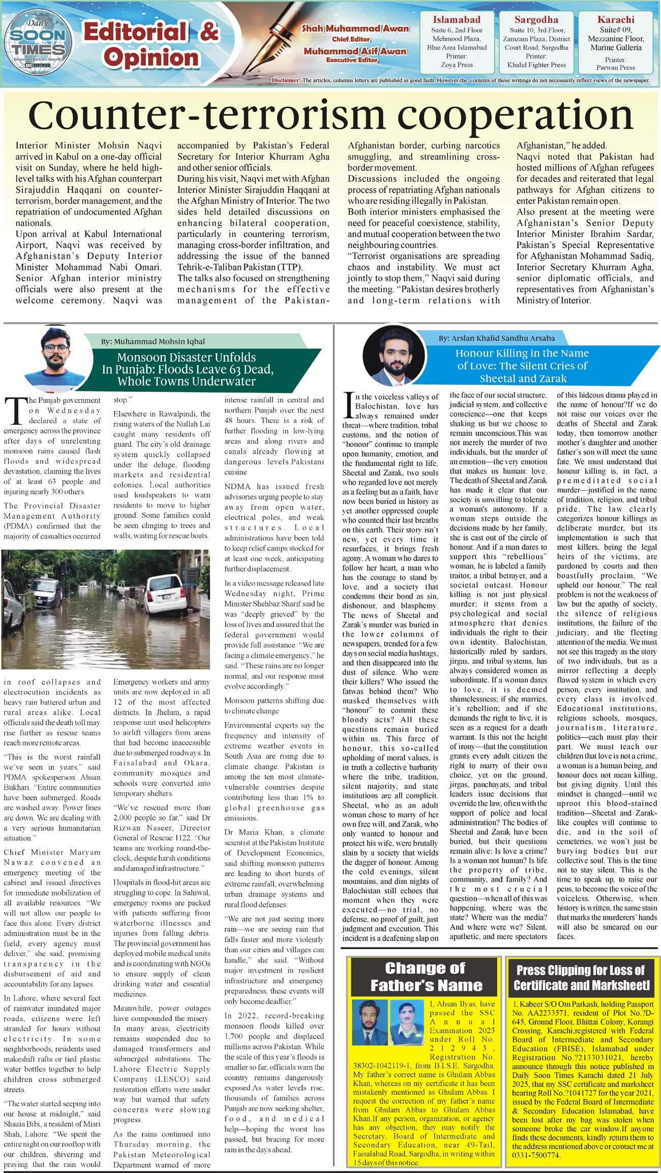 Daily Soon Times Page: 2 July 21, 2025 Daily Soon Times today's ePaper leading English national newspaper from Islamabad, Sargodha, Karachi, Pakistan << First << 2 >> Last >> Page 1Page 2Page 3Page 4 × Daily Soon Times 1k23k4 1k23k4 2