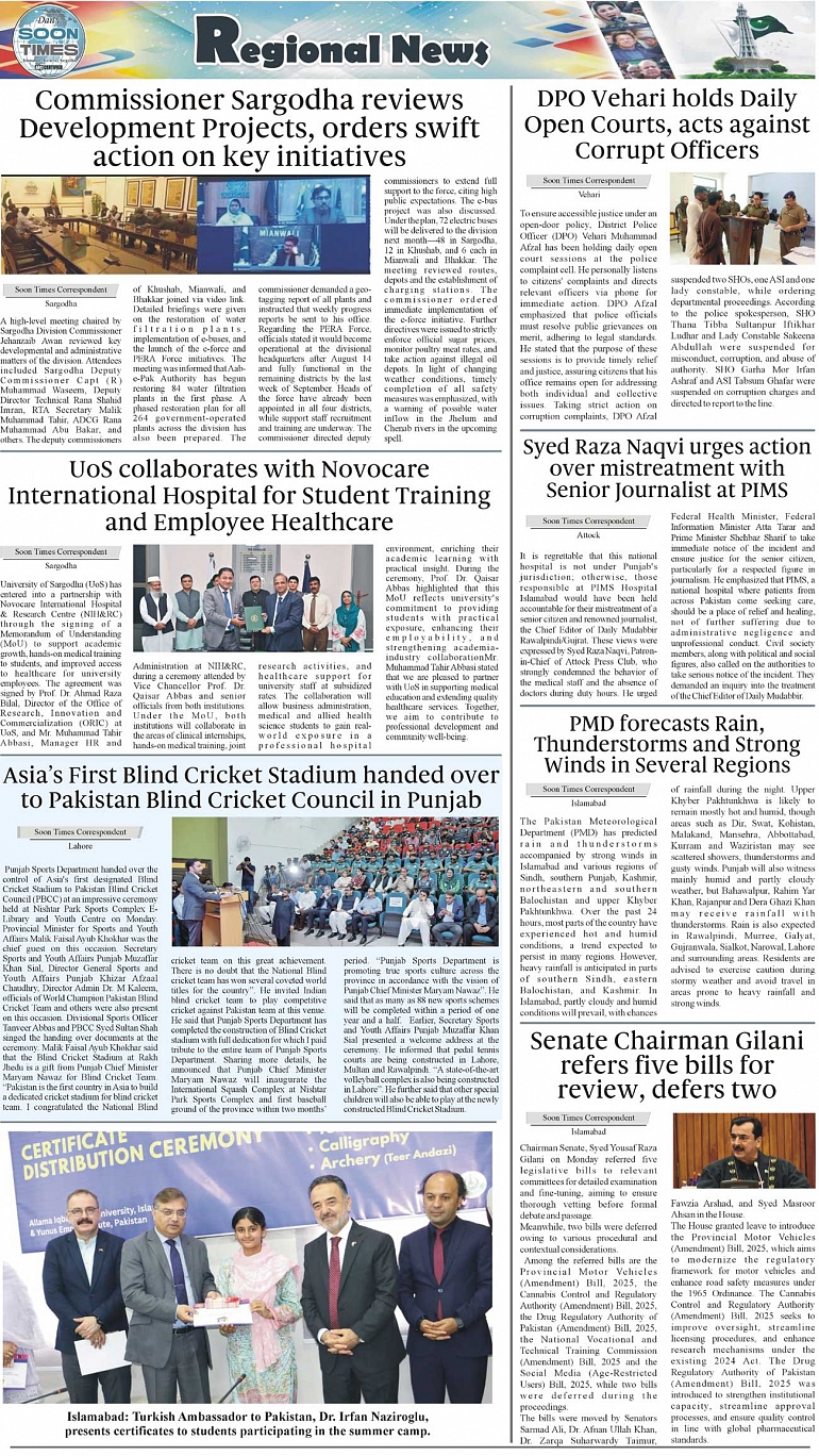 Daily Soon Times Page: 3 July 22, 2025 Daily Soon Times today's ePaper leading English national newspaper from Islamabad, Sargodha, Karachi, Pakistan << First << 3 >> Last >> Page 1Page 2Page 3Page 4 × Daily Soon Times 1234 1234 3
