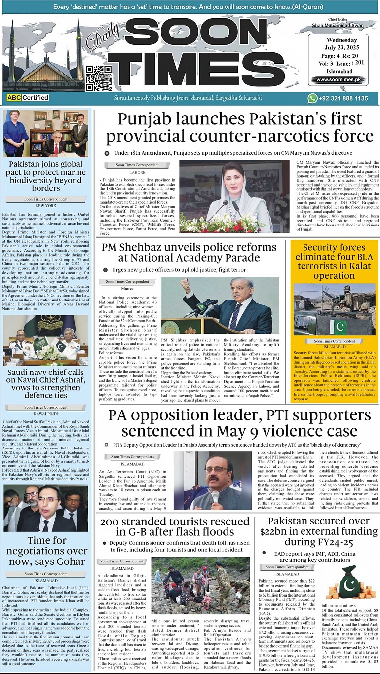 Daily Soon Times July 23, 2025 Daily Soon Times today's ePaper leading English national newspaper from Islamabad, Sargodha, Karachi, Pakistan << First << 1 >> Last >> Page 1Page 2Page 3Page 4 × Daily Soon Times 1..23,4 1..23,4 1..