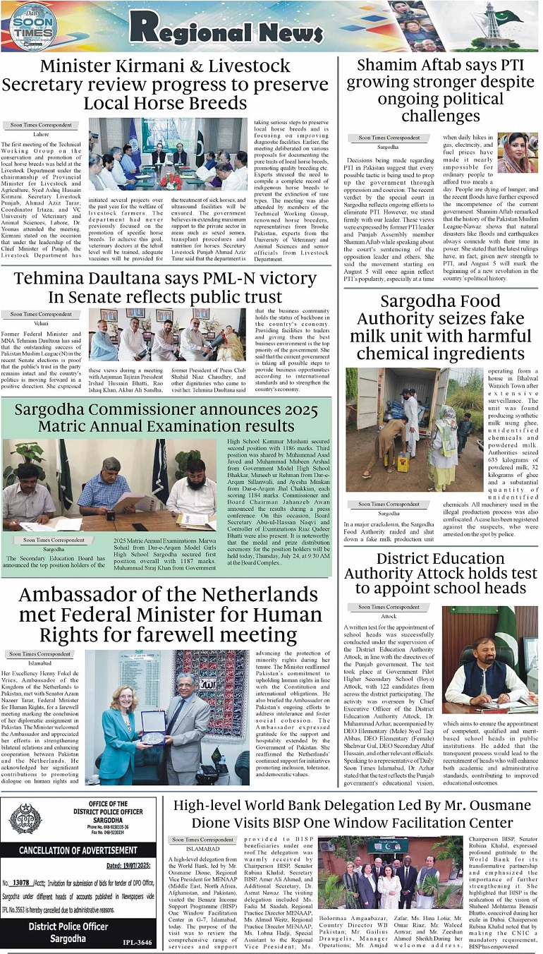 Daily Soon Times Page: 3 July 24, 2025 Daily Soon Times today's ePaper leading English national newspaper from Islamabad, Sargodha, Karachi, Pakistan << First << 3 >> Last >> Page 1Page 2Page 3Page 4 × Daily Soon Times 1.234 1.234 3