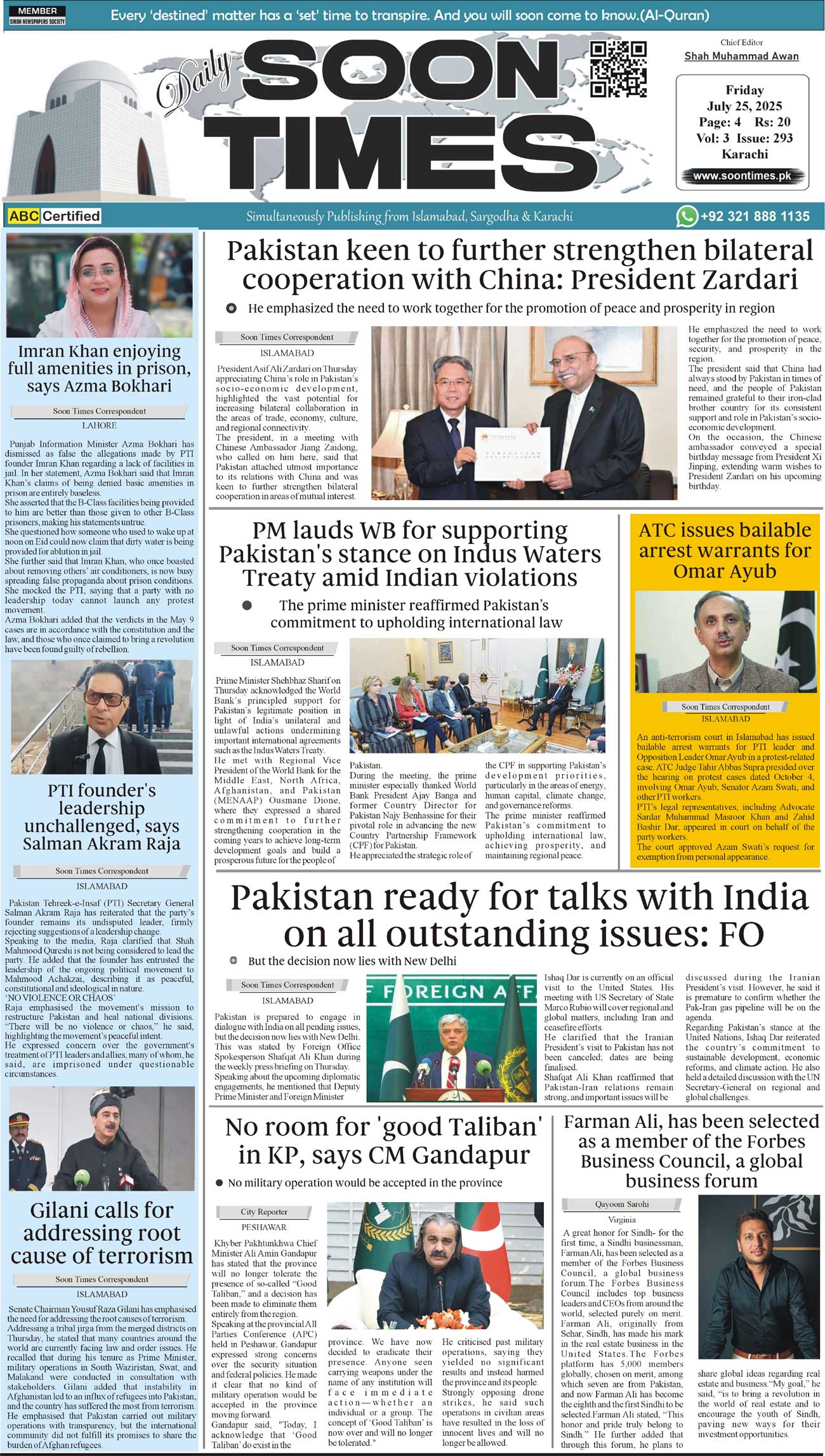 Daily Soon Times today's ePaper leading English national newspaper from Islamabad, Sargodha, Karachi, Pakistan