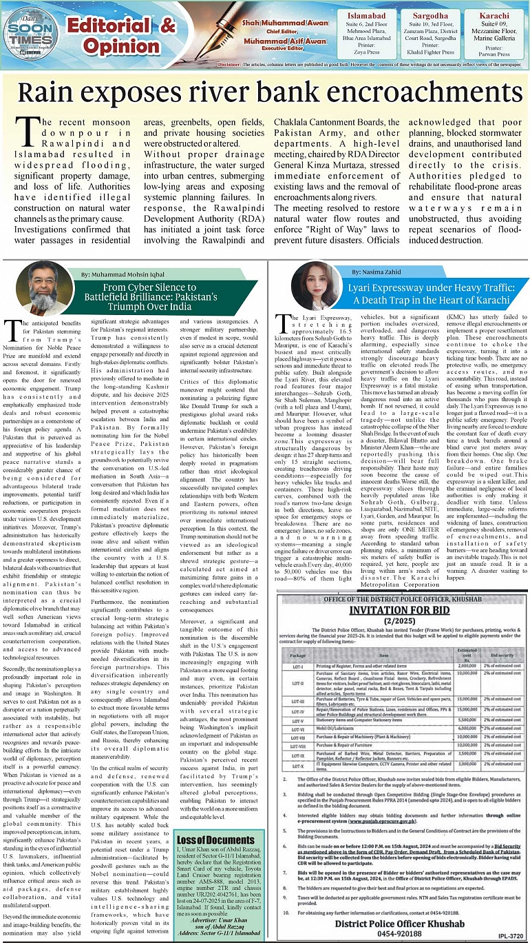 Daily Soon Times Page: 2 July 28, 2025 Daily Soon Times today's ePaper leading English national newspaper from Islamabad, Sargodha, Karachi, Pakistan << First << 2 >> Last >> Page 1Page 2Page 3Page 4 × Daily Soon Times 1234 1234 2