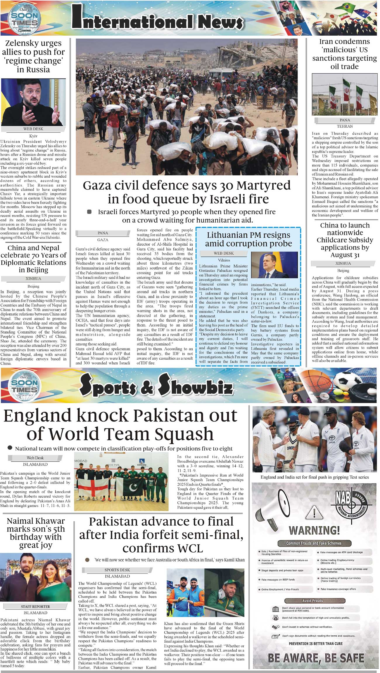 Daily Soon Times Page: 4 August 01, 2025 Daily Soon Times today's ePaper leading English national newspaper from Islamabad, Sargodha, Karachi, Pakistan << First << 4 >> Last >> Page 1Page 2Page 3Page 4 × Daily Soon Times 1234 1234 4
