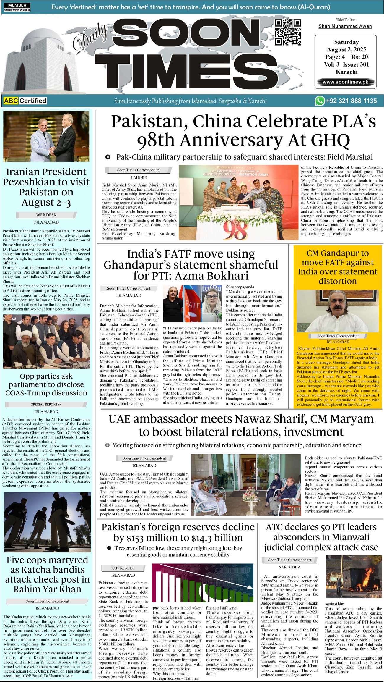 Daily Soon Times August 02, 2025 Daily Soon Times today's ePaper leading English national newspaper from Islamabad, Sargodha, Karachi, Pakistan << First << 1 >> Last >> Page 1Page 2Page 3Page 4 × Daily Soon Times 1k23k4 1k23k4 1k