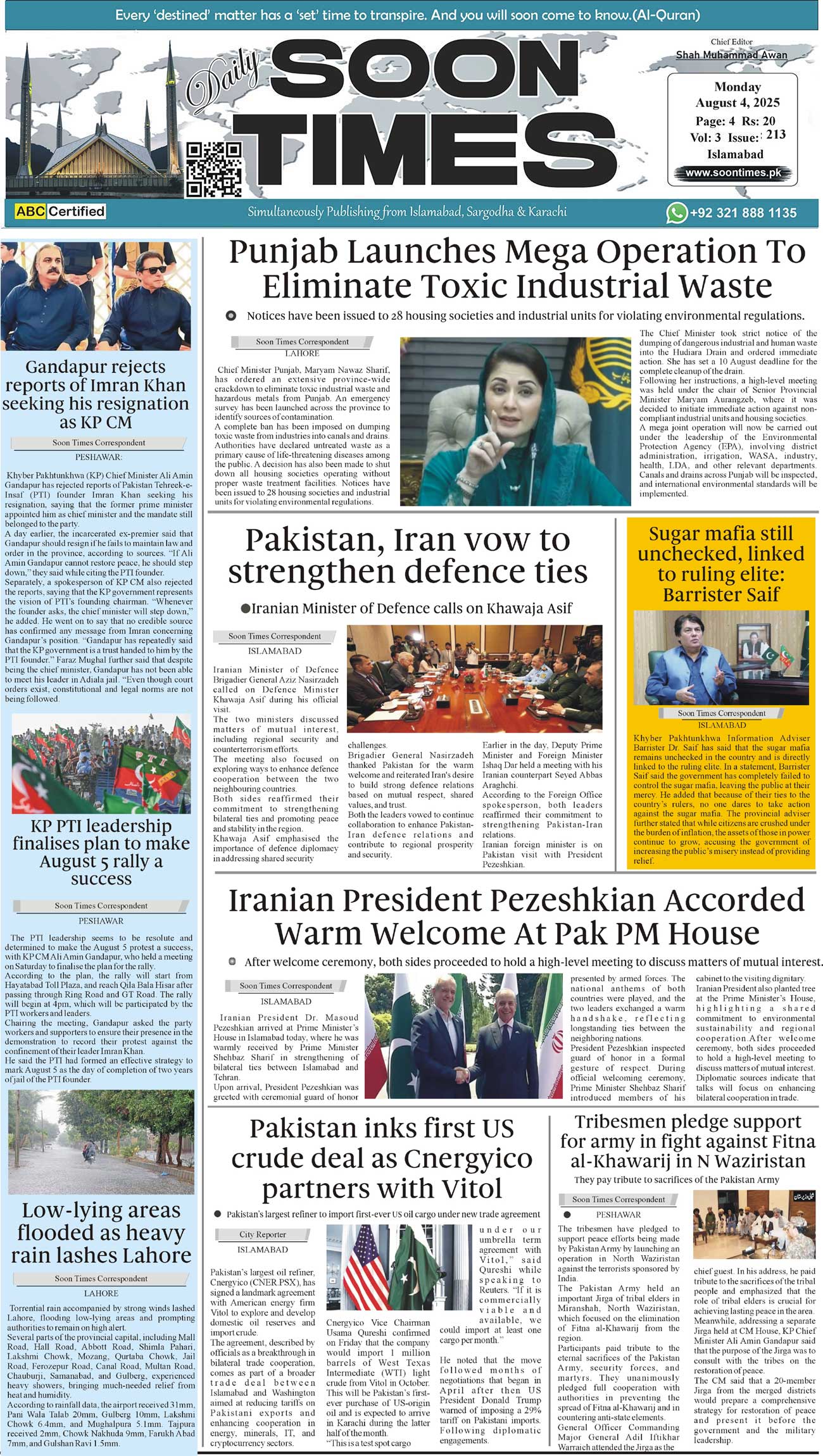 Daily Soon Times August 04, 2025 Daily Soon Times today's ePaper leading English national newspaper from Islamabad, Sargodha, Karachi, Pakistan << First << 1 >> Last >> Page 1Page 2Page 3Page 4 × Daily Soon Times 1.2k34 1.2k34 1.