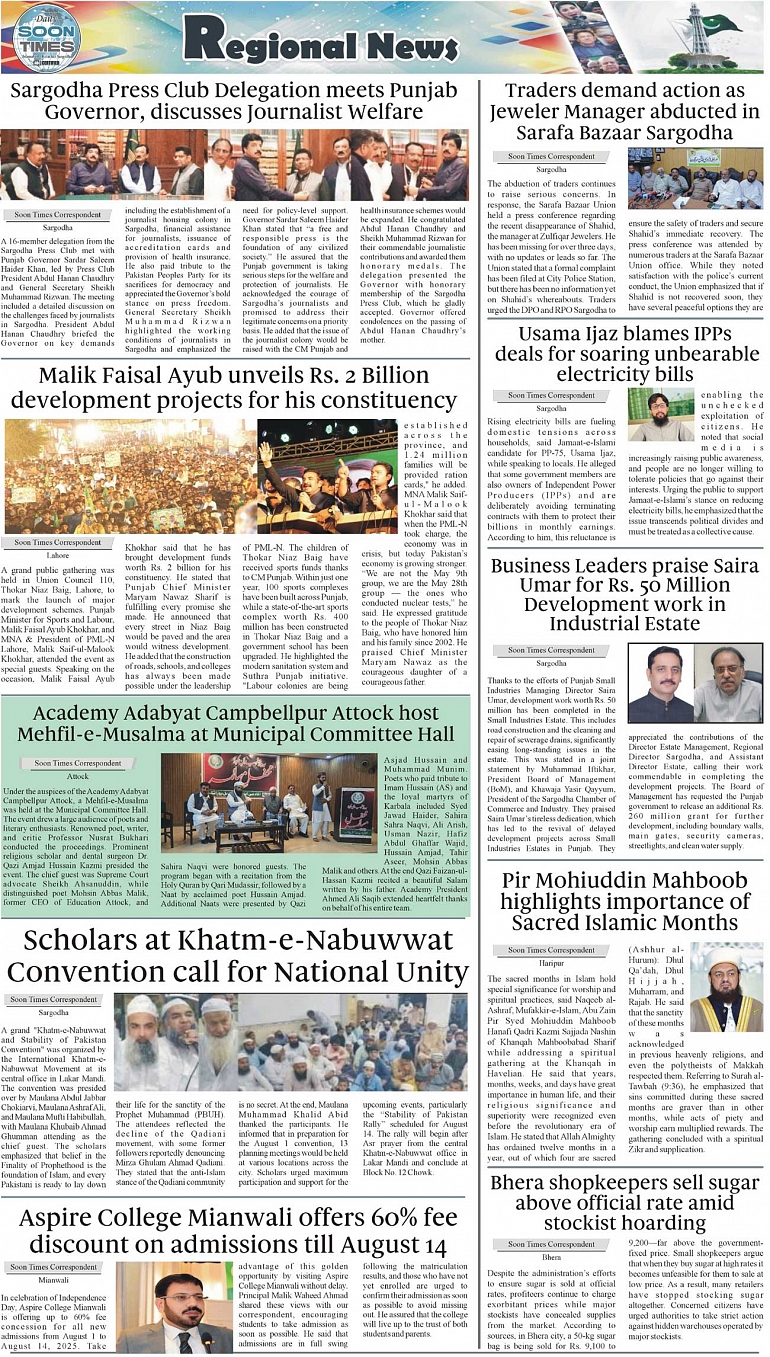 Daily Soon Times Page: 3 August 04, 2025 Daily Soon Times today's ePaper leading English national newspaper from Islamabad, Sargodha, Karachi, Pakistan << First << 3 >> Last >> Page 1Page 2Page 3Page 4 × Daily Soon Times 1.2k34 1.2k34 3