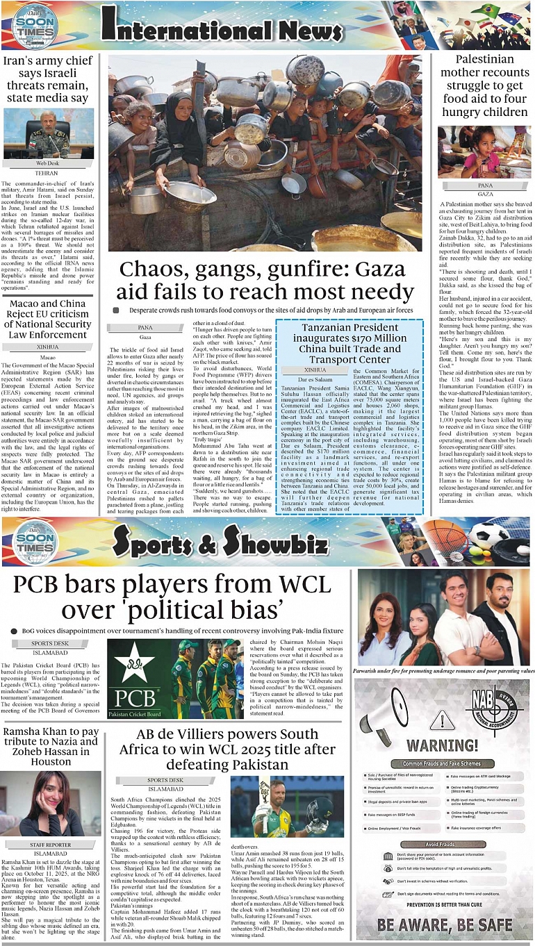 Daily Soon Times Page: 4 August 04, 2025 Daily Soon Times today's ePaper leading English national newspaper from Islamabad, Sargodha, Karachi, Pakistan << First << 4 >> Last >> Page 1Page 2Page 3Page 4 × Daily Soon Times 1.2k34 1.2k34 4
