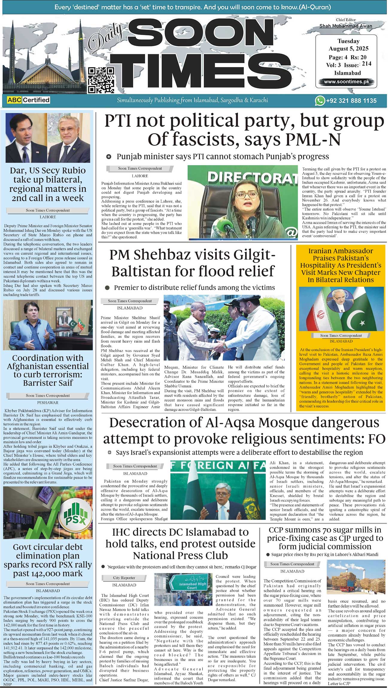 Daily Soon Times August 05, 2025 Daily Soon Times today's ePaper leading English national newspaper from Islamabad, Sargodha, Karachi, Pakistan << First << 1 >> Last >> Page 1Page 2Page 3Page 4 × Daily Soon Times FP2k34 FP2k34 FP