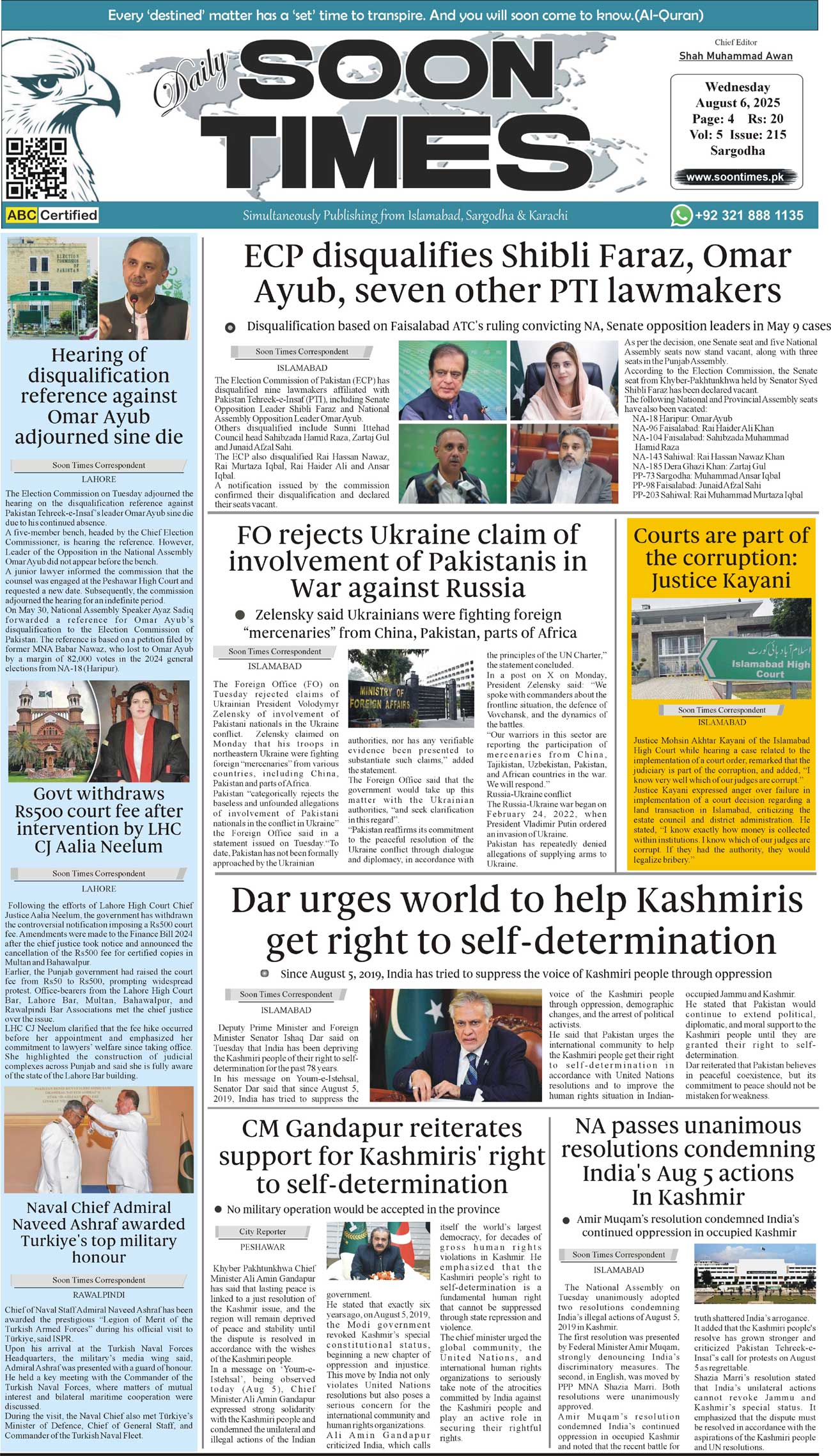 Daily Soon Times August 06, 2025 Daily Soon Times today's ePaper leading English national newspaper from Islamabad, Sargodha, Karachi, Pakistan << First << 1 >> Last >> Page 1Page 2Page 3Page 4 × Daily Soon Times 1234 1234 1
